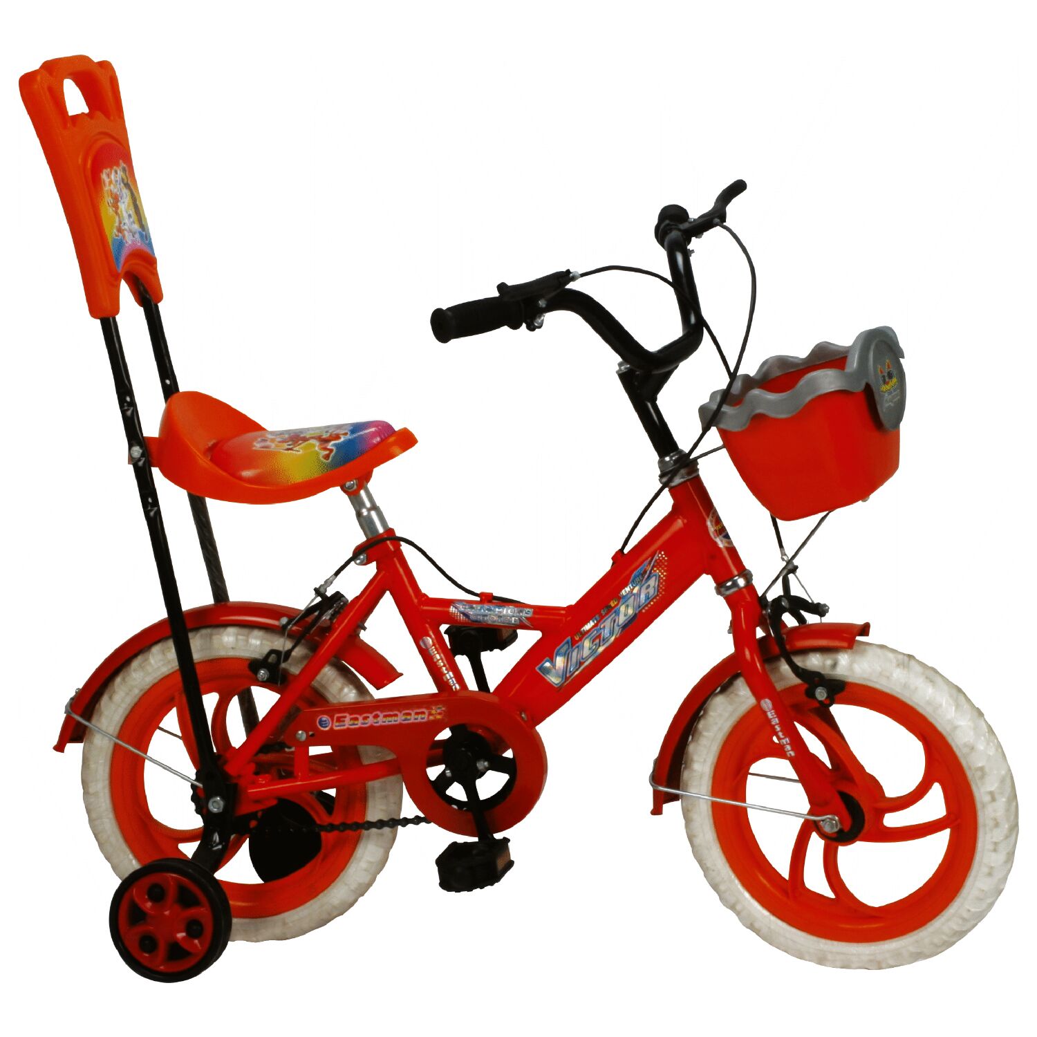 | Side Pull Caliper Brakes Powder Coated | Plastic Base Vinyl Top with Sissy Bar | 14” Plastic Rims in Assorted Colors | 14”, EVA Tyres | Plastic Basket Side Supports |