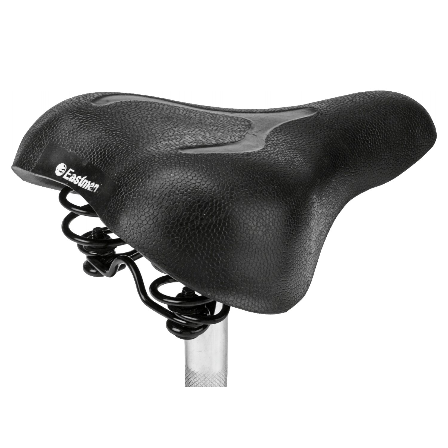 Saddle MTB PVC Top Plastic Base With Single Coil Spring Black.
